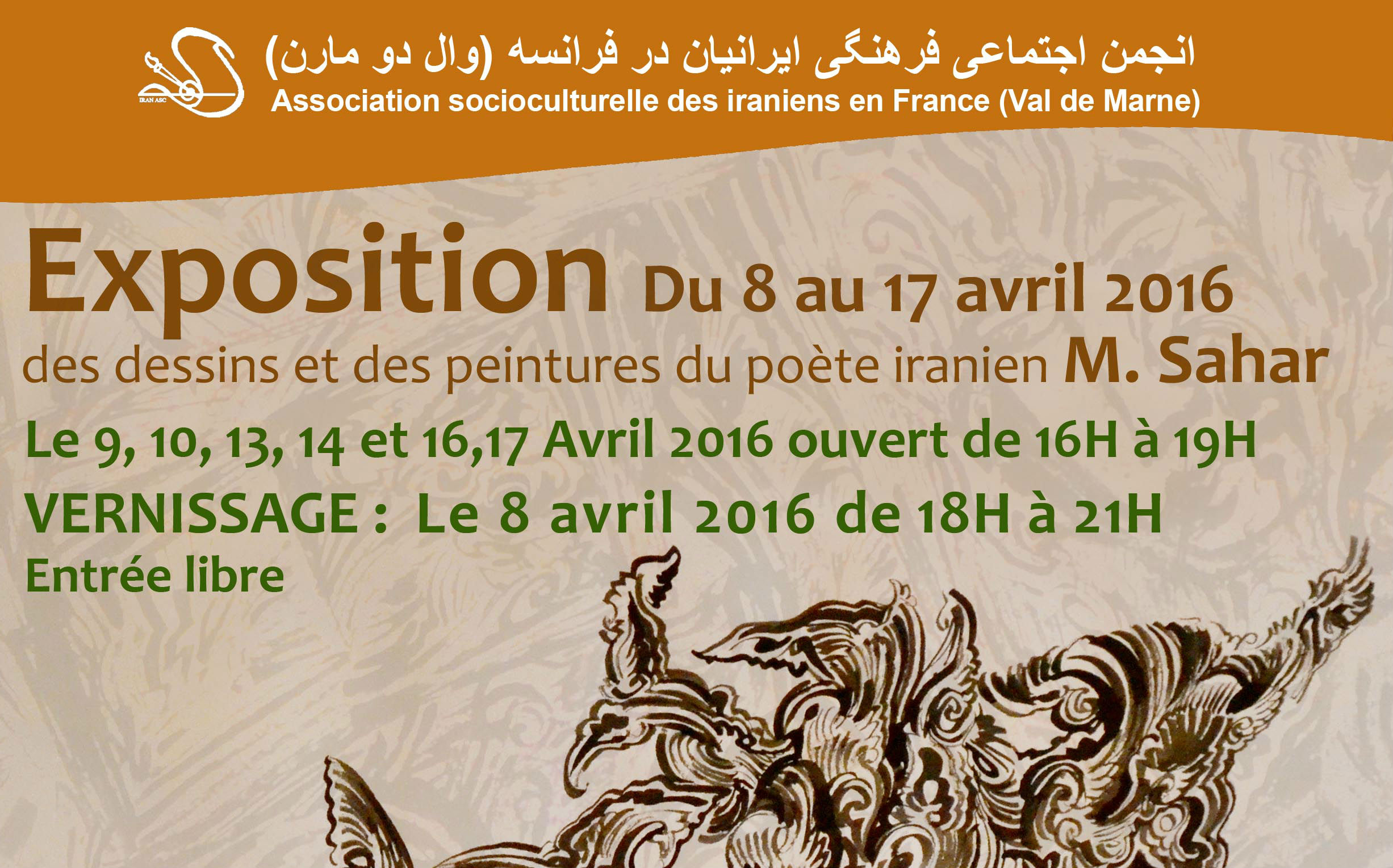 انجمن اجتماعی فرهنگی ایرانیان در فرانسه قرار است نمایشگاهی از آثار نقاشی م.سحر، هنرمند ایرانی برگزار کند.