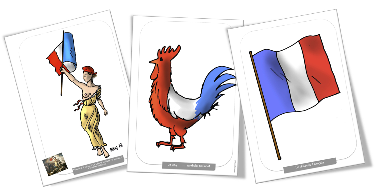 پرچم سه رنگ آبی، سفید و قرمز یکی دیگر از نمادهای فرانسه است که بصورت عمودی کنار هم قرار گرفتهاند. رنگ آبی بنابر افسانهها روپوش یا شنل مارتین مقدس بوده است. سفید رنگ منتخب شاهان فرانسوی و قرمز رنگ درفش جنگی عدالت کارل کبیر بوده است.