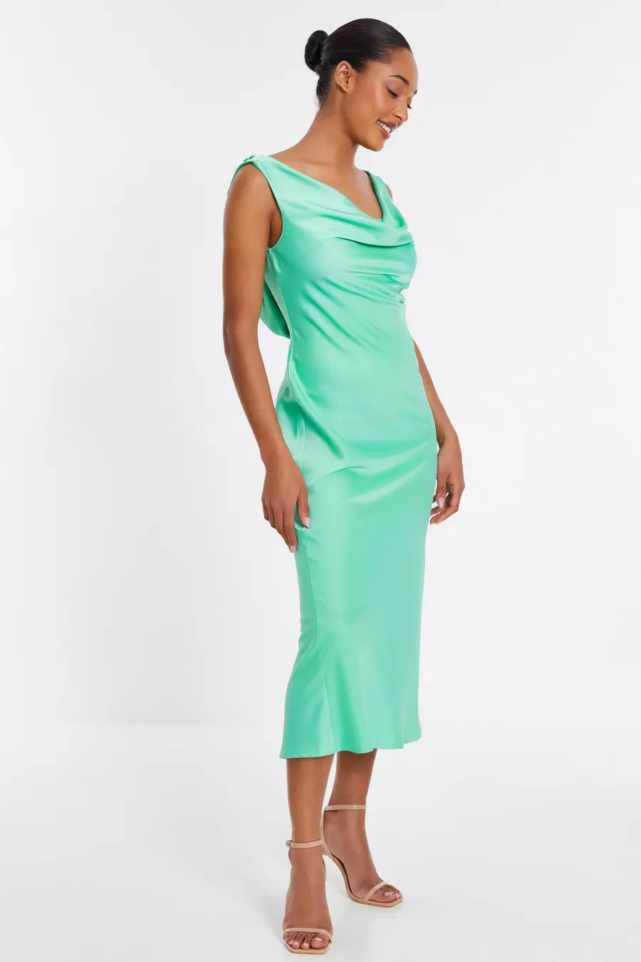 Anoola D096 Mint Midi Dress with Wide Neckline and Bell Sleeves Very well made.