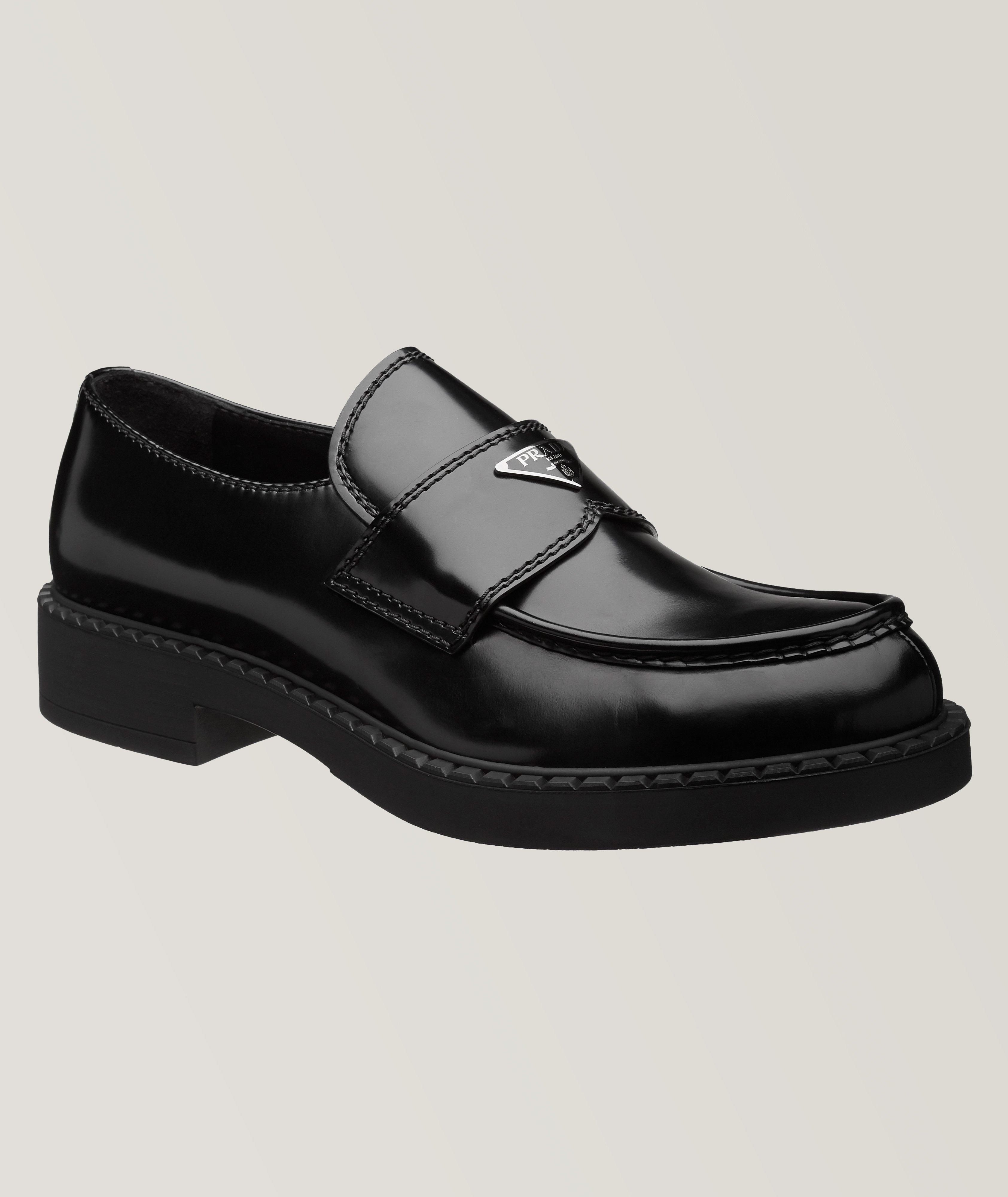 Prada Logo Spazzolato Leather Loafers Dress Shoes Harry Rosen Very well made.