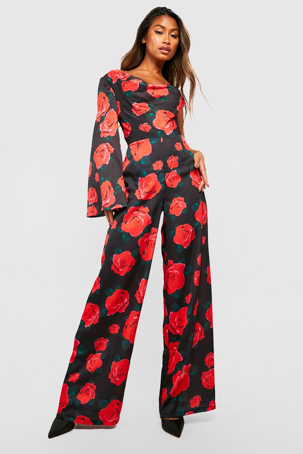 Oxolloxo Black Red Floral Print Jumpsuit Very well made.