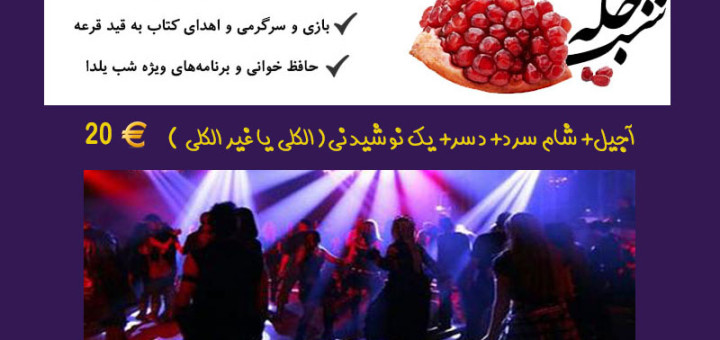 انجمن فرهنگی امید امسال نیز مانند سال گذشته، جشن ویژه شب یلدا برگزار میکند. برای خرید اینترنتی بلیط خود اینجا را کلیک کنید. برای اطلاعات بیشتر به پوستر زیر توجه کنید: