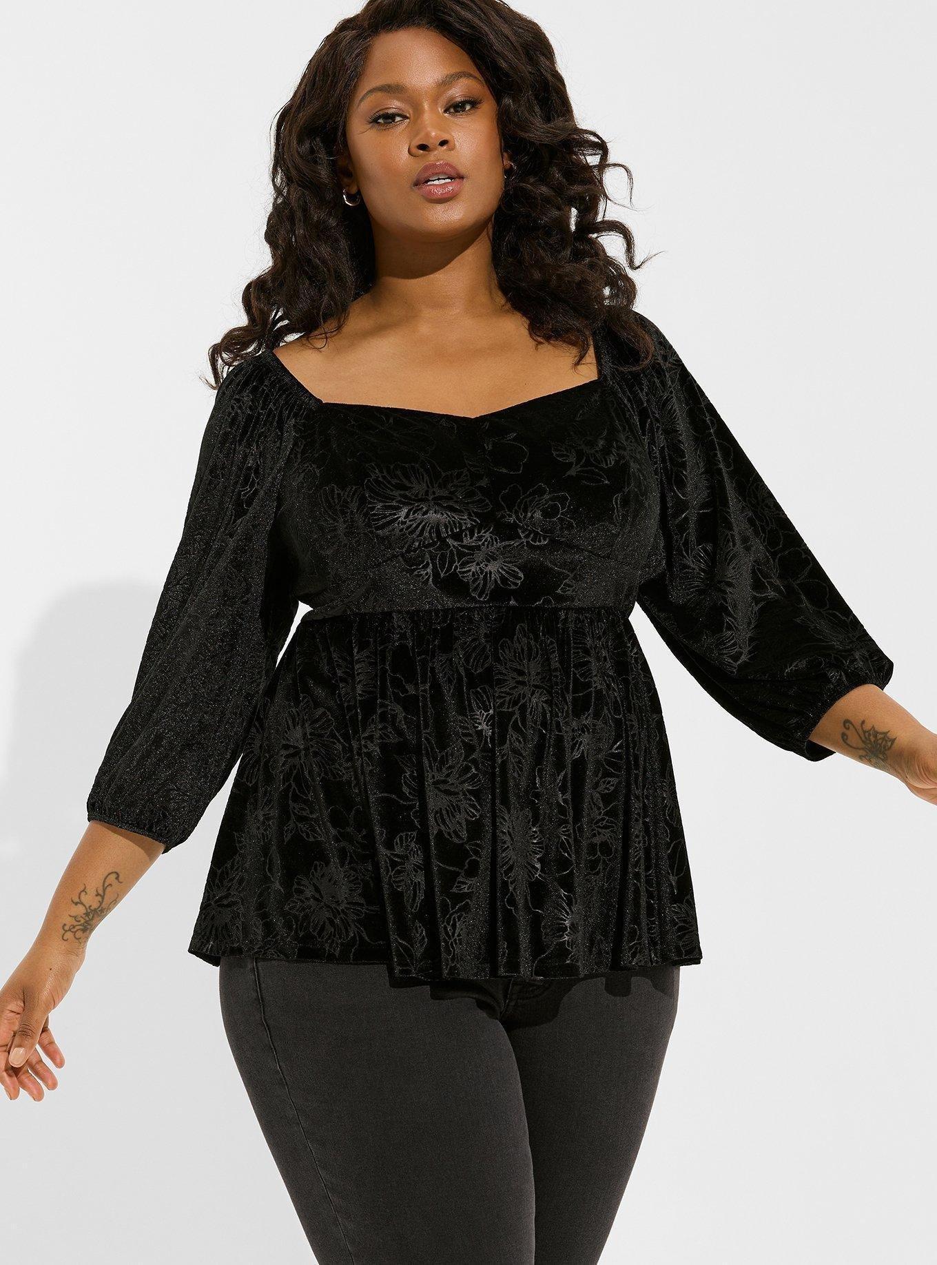 VELVET SEQUINS PEPLUM TOP BLACK Very well made.